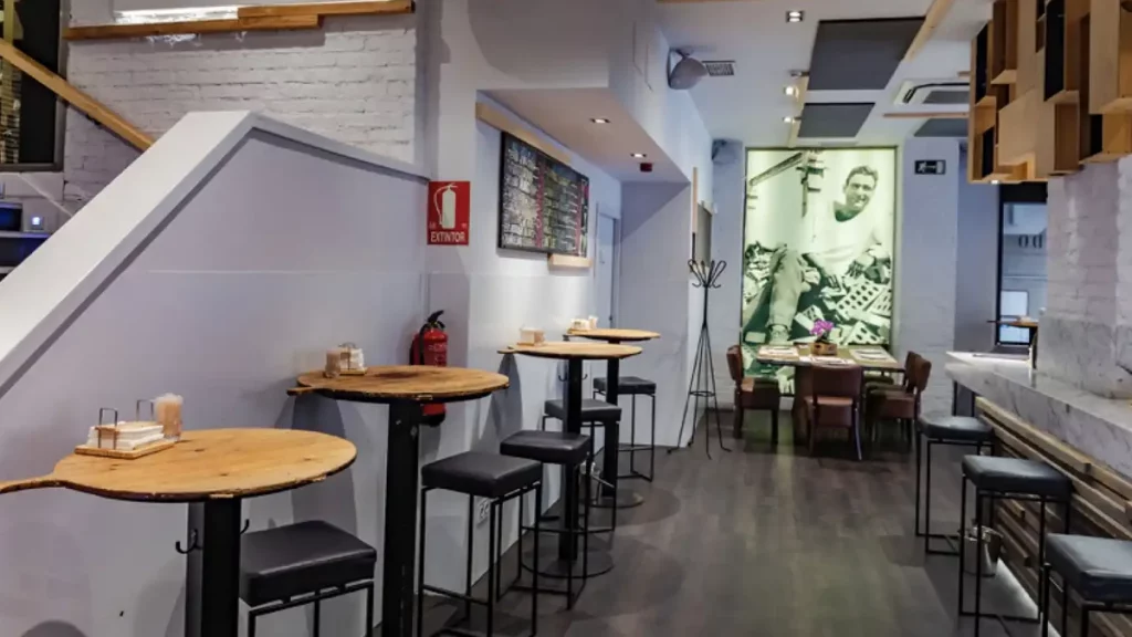 Taberna Laredo tiene una de las mejores barras de Madrid, pero además cuenta con una estupenda sala en su primer piso con una decoración elegante y vista a su enorme bodega.